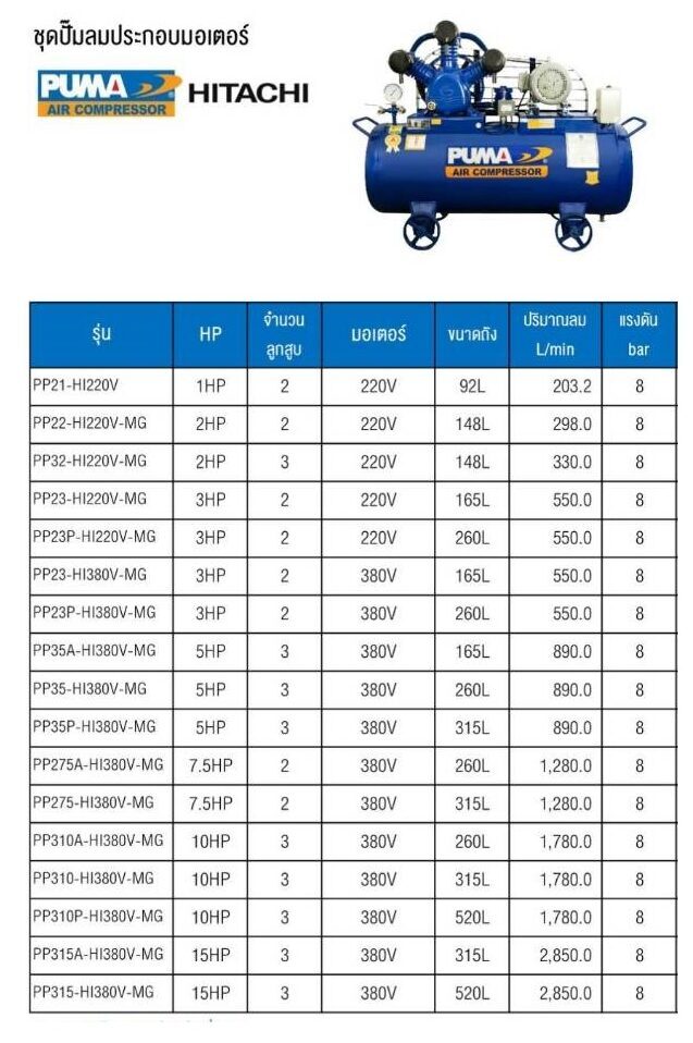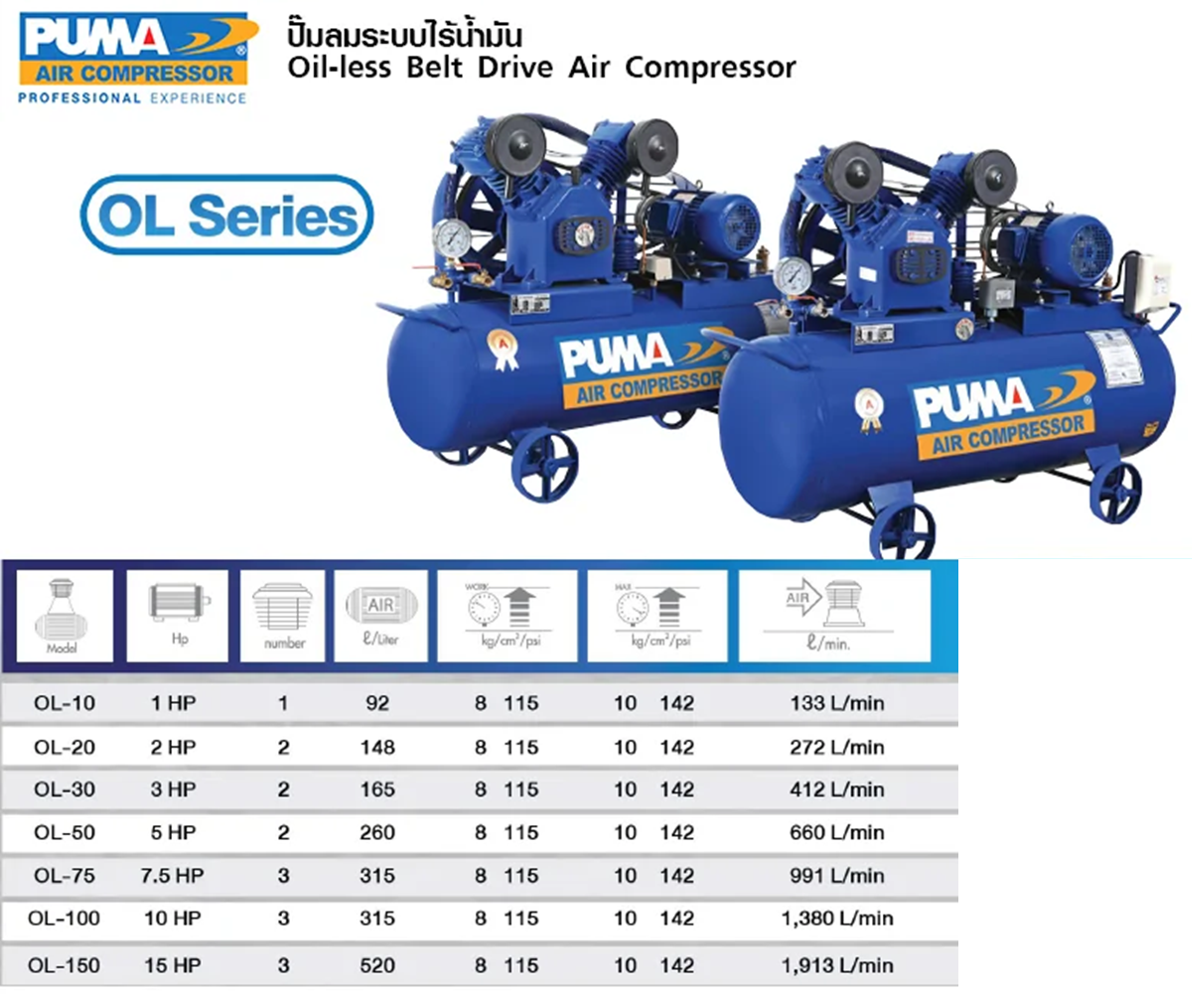 PUMA PISTON AIRCOMPRESSOR ปั๊มลมลูกสูบ ยอดนิยมอันดับ 1