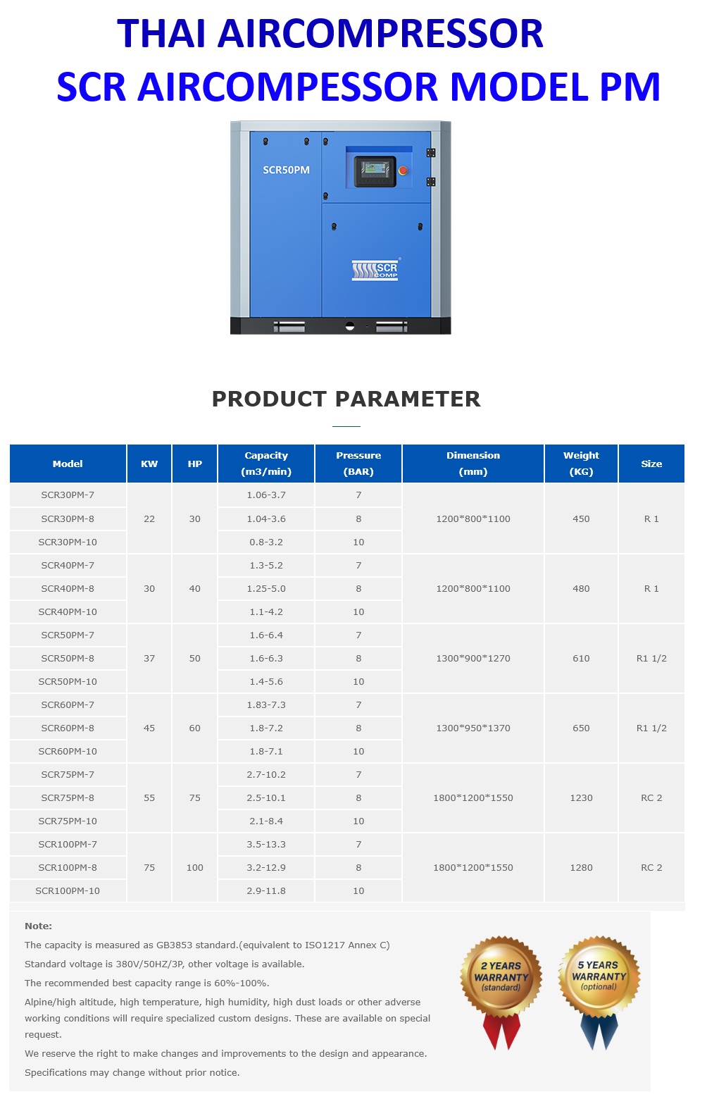 SCREW AIR COMPRESSOR – SCR MODEL PM INVERTER ประหยัดไฟฟ้า 30%
